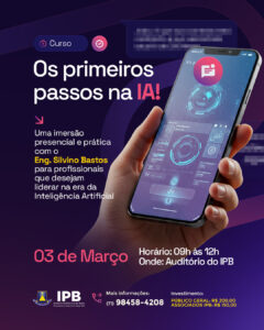 O Instituto Politécnico da Bahia (IPB) convida seus associados e o público geral para o curso “Primeiros Passos na IA”. Esta formação foi desenhada para desmistificar a tecnologia e oferecer ferramentas práticas para aplicação imediata na sua rotina profissional.